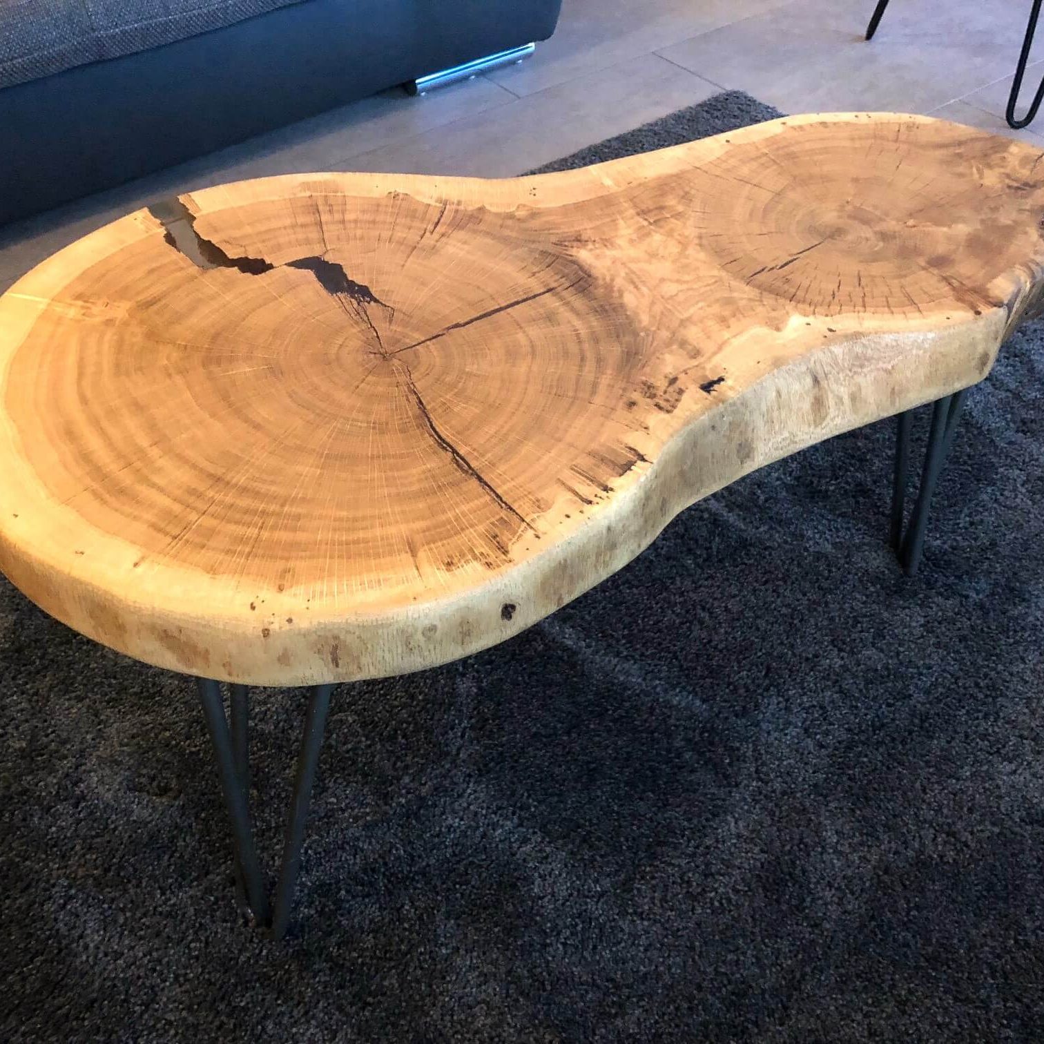 Diese Tischplatte ist aus 2 Stämmen zusammengewachsen.