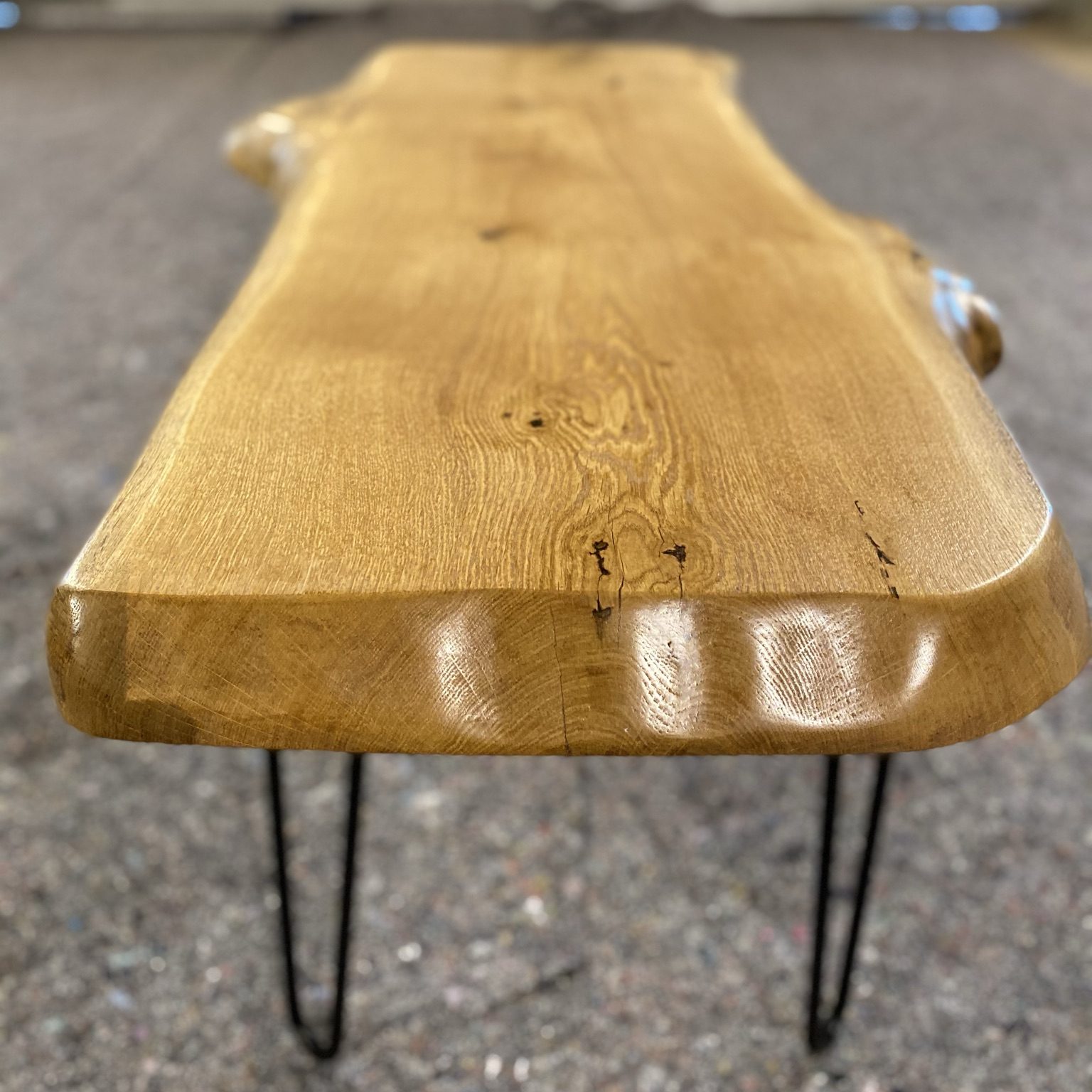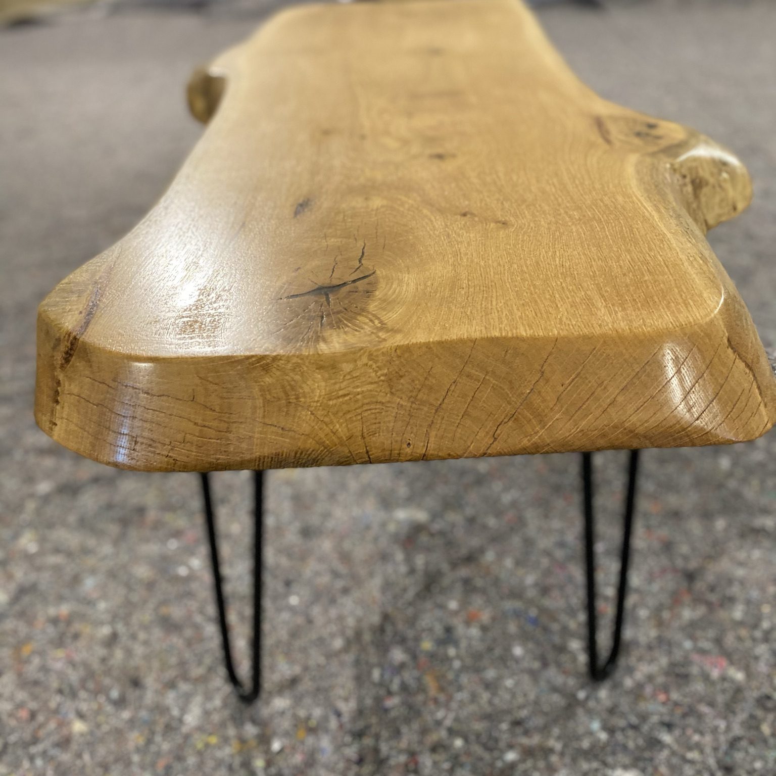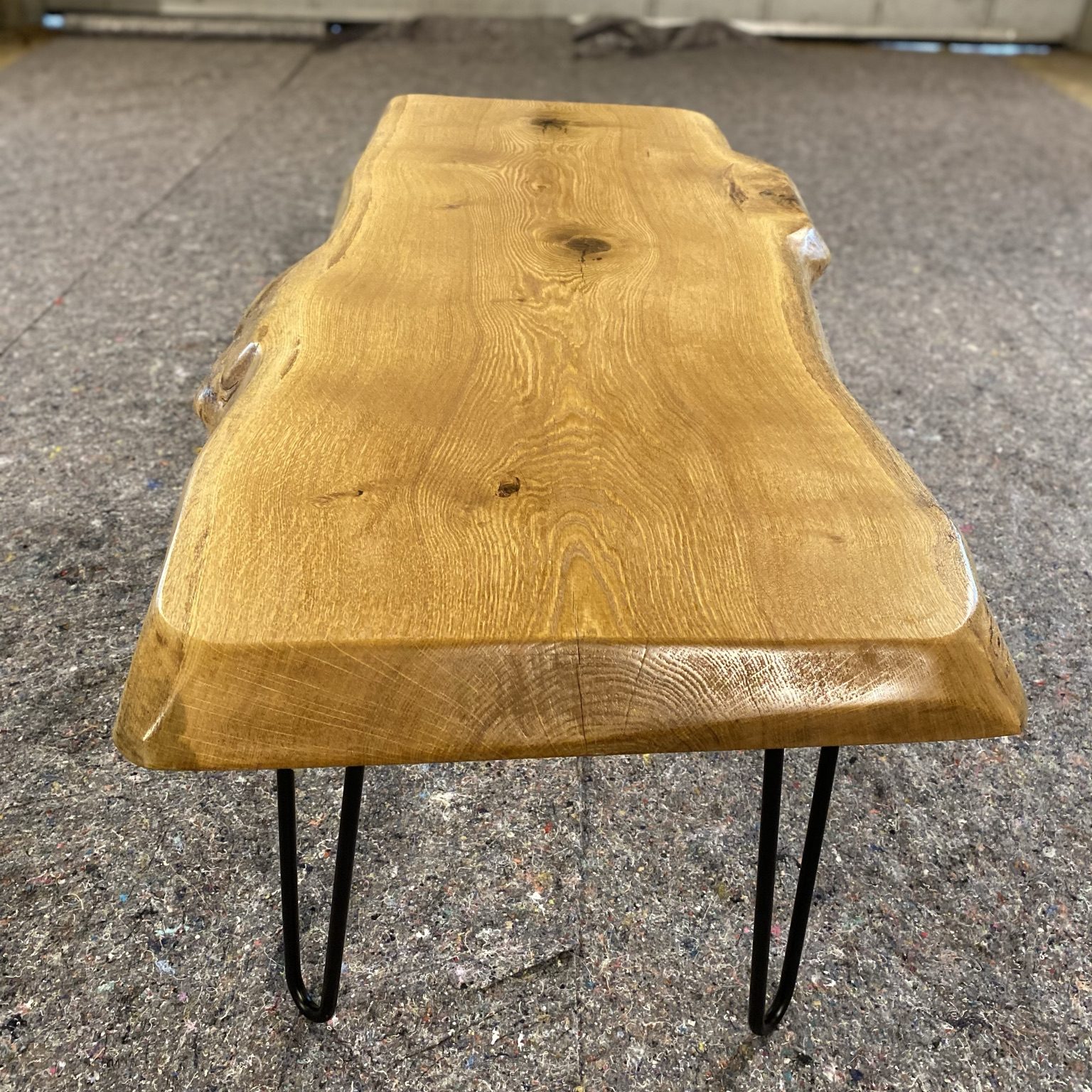 Wuchtige Kanten zeichnen diesen Couchtisch.