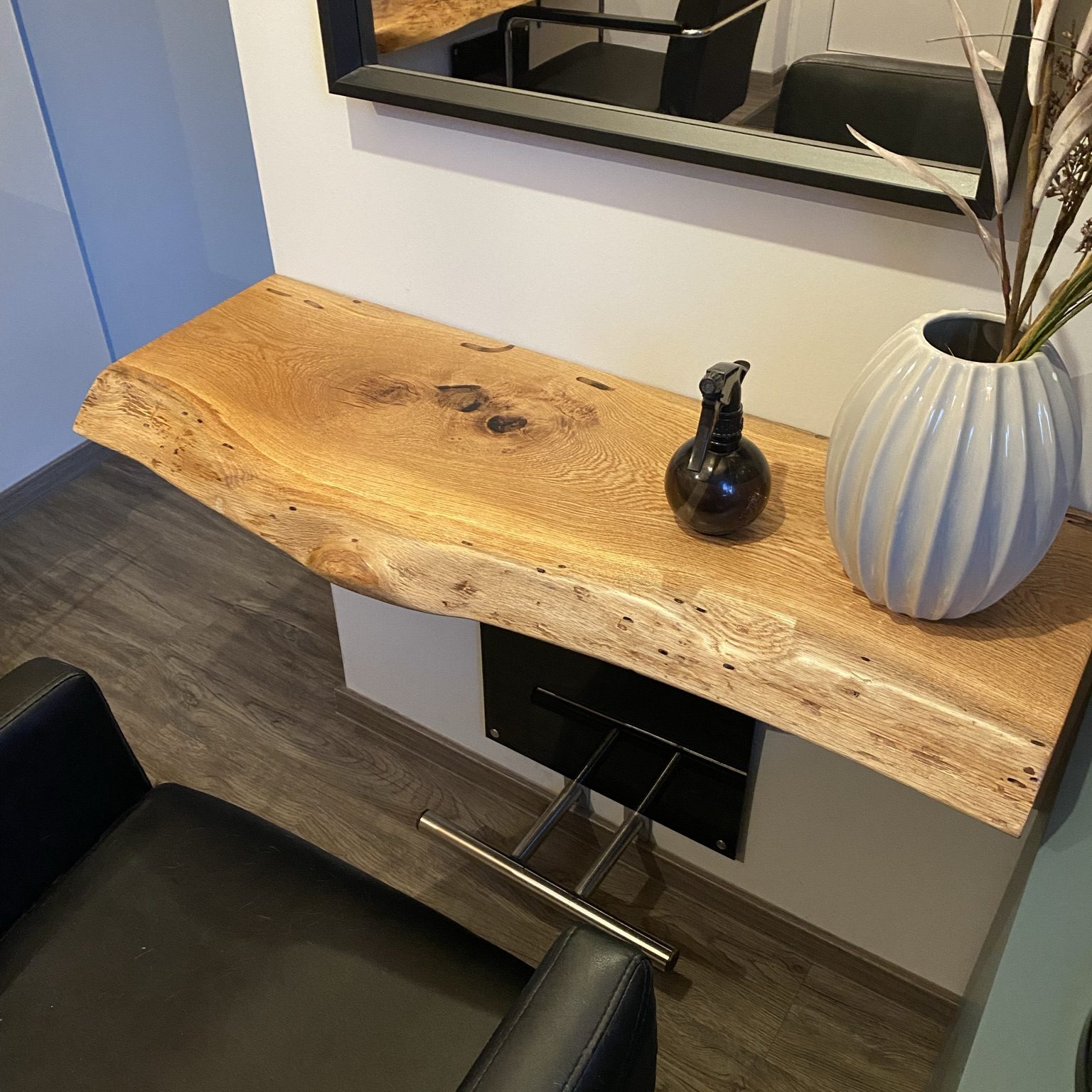 In diesem Salon wurden die Ablagen aus Eiche gefertigt,