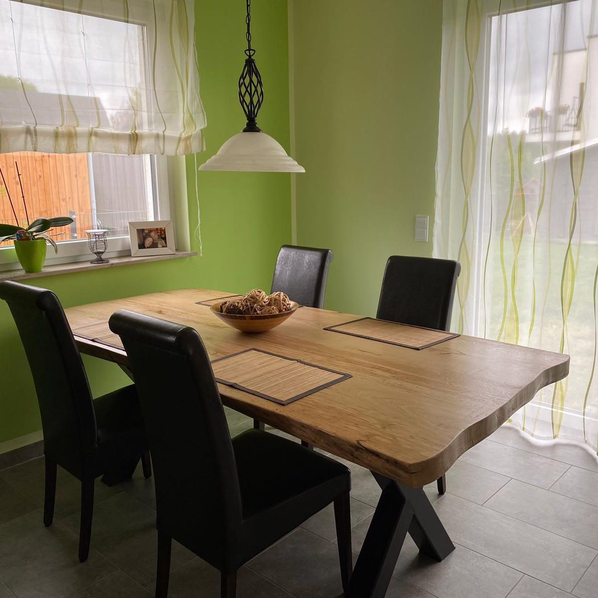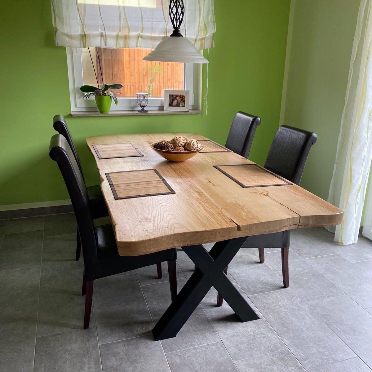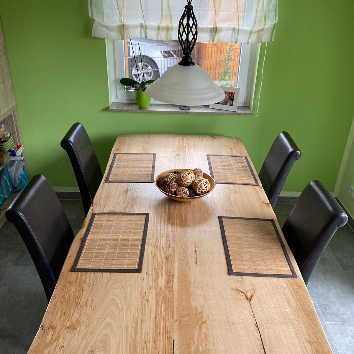 Dieser Tisch besteht aus 2 schönen Eichenbohlen von 6 cm Dicke.