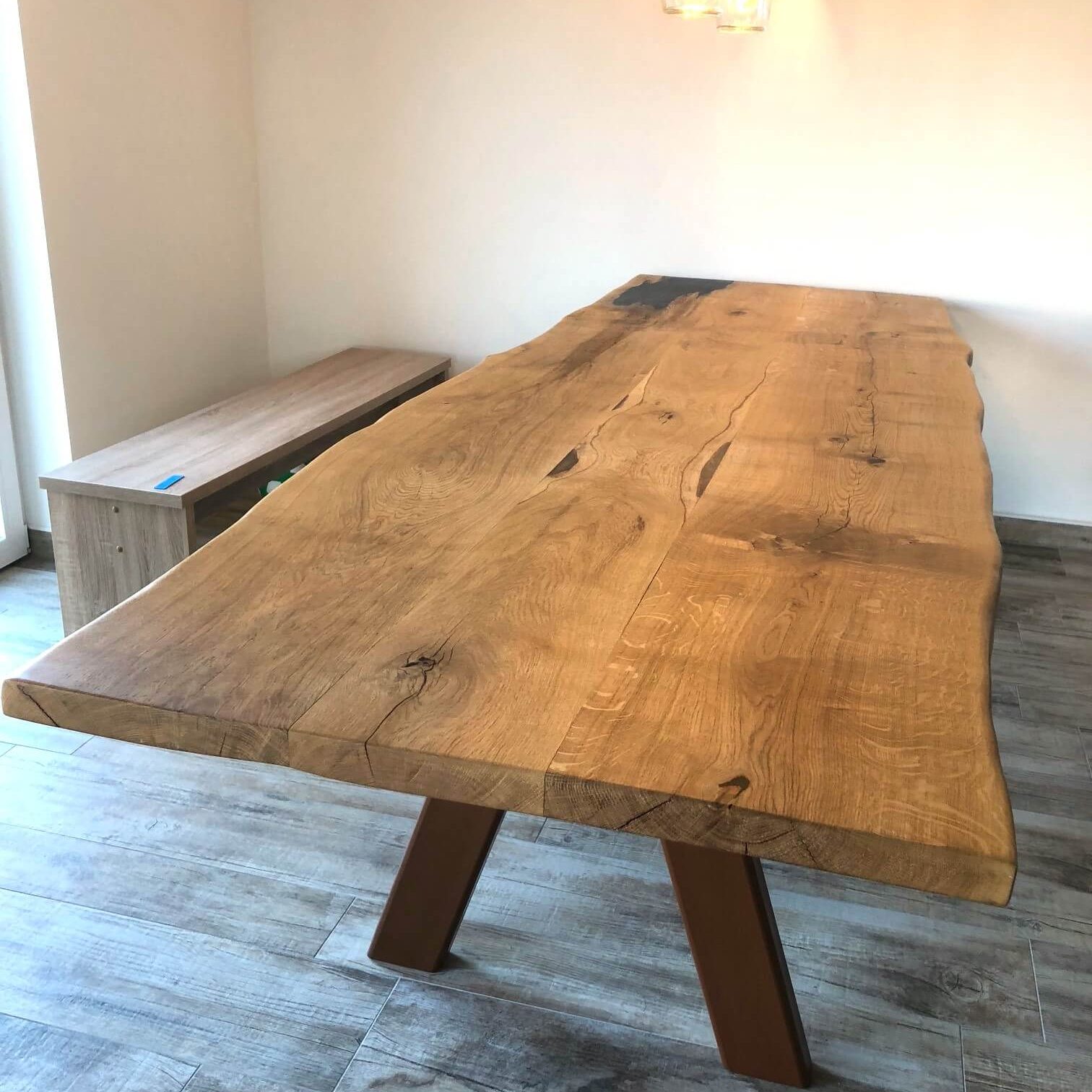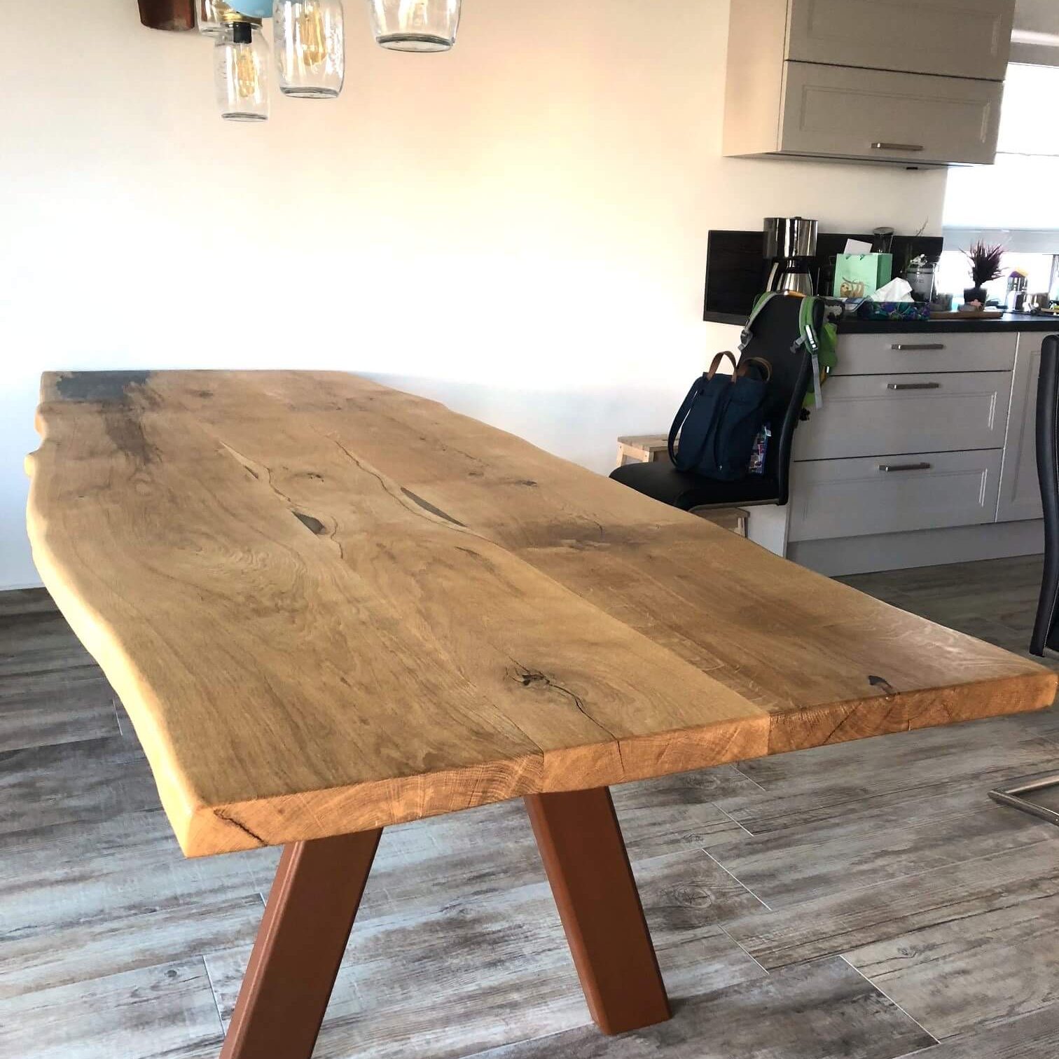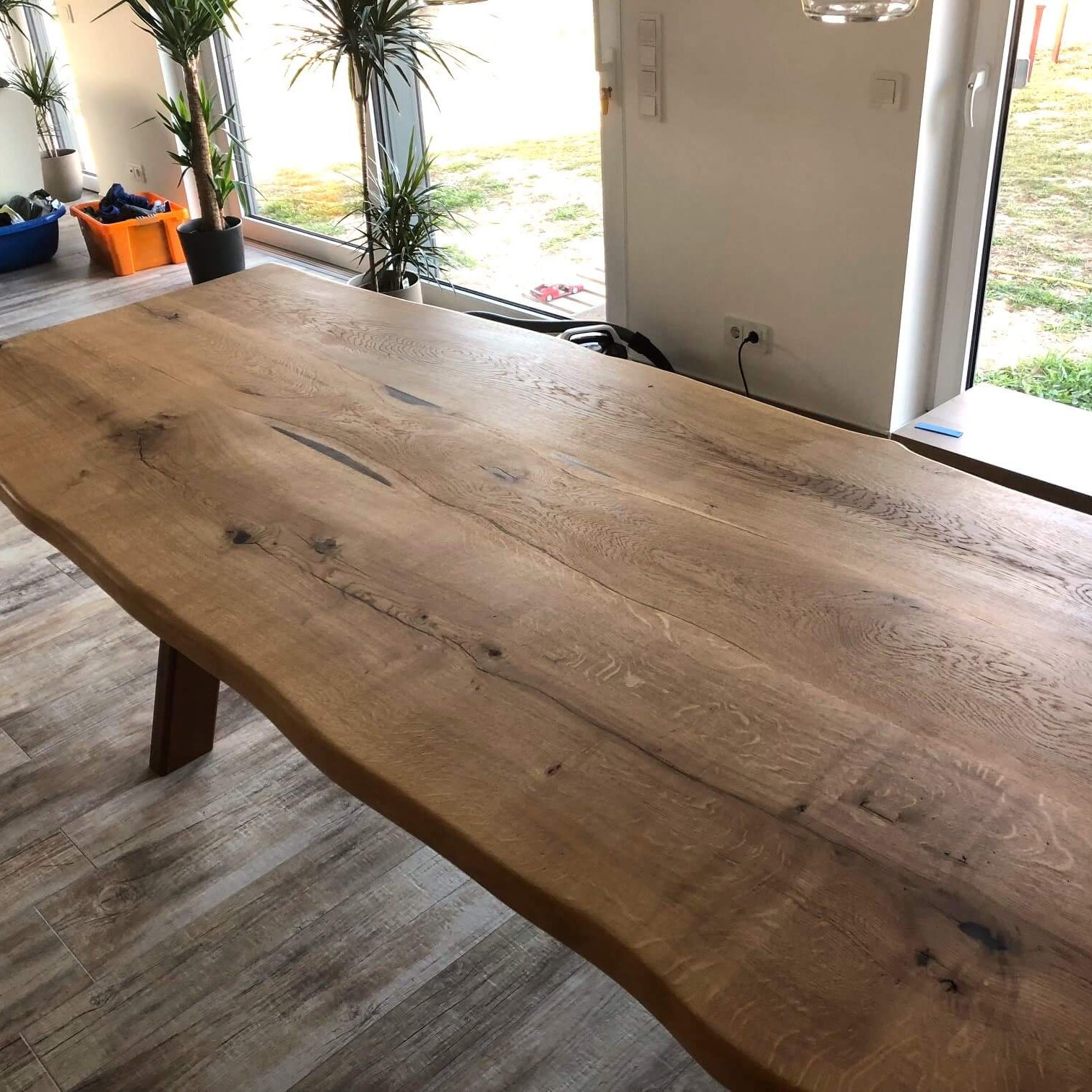 3 Eichenbohlen bilden diesen schönen Eichentisch. An der 3 Meter langen Tafel findet jeder einen Platz!