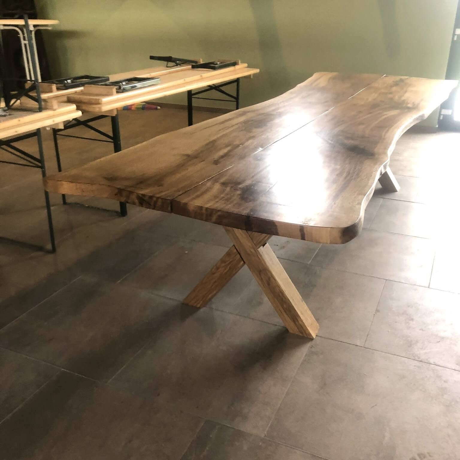 2 Bohlen die stumpf gestoßen sind. Die Kanten sind geschwungen.
