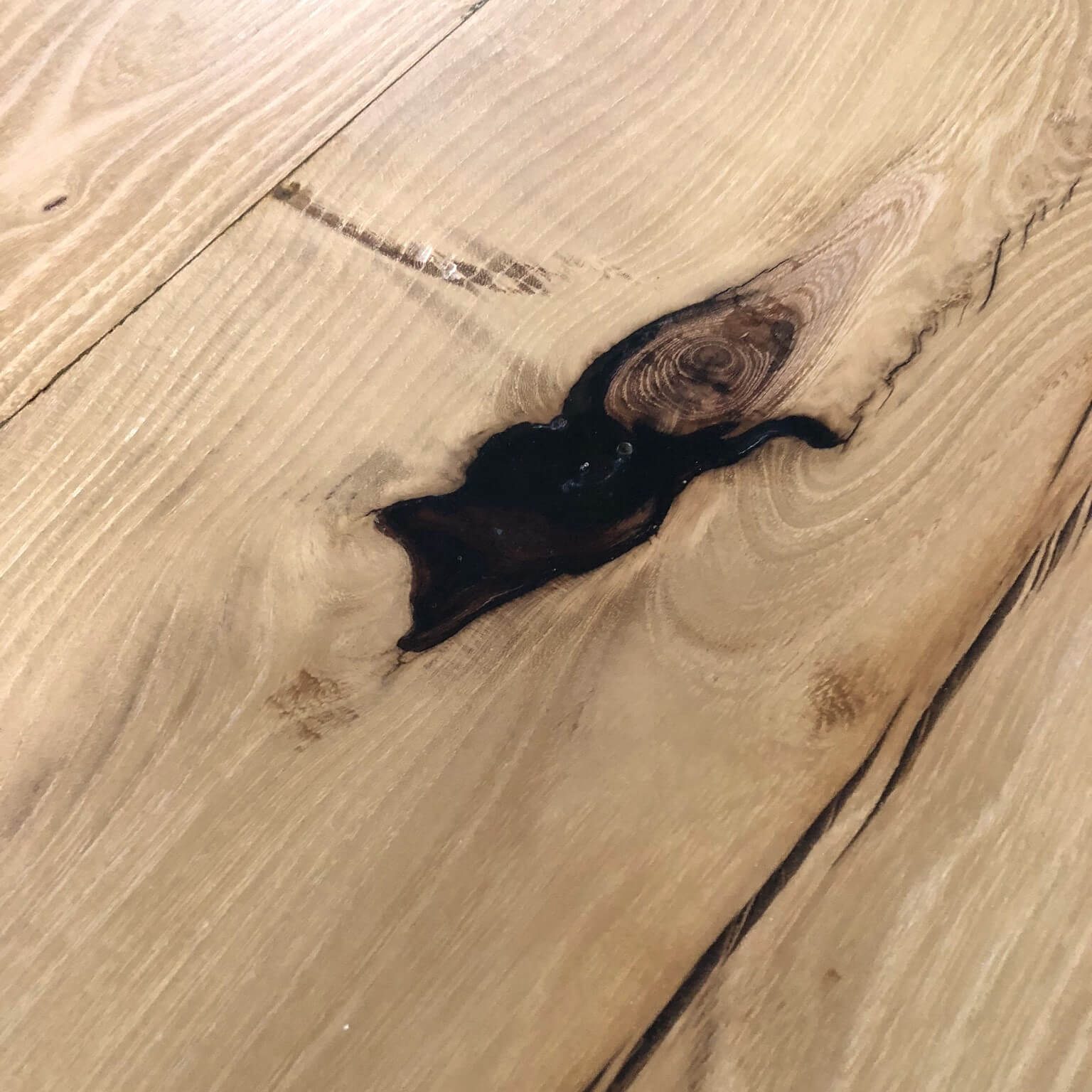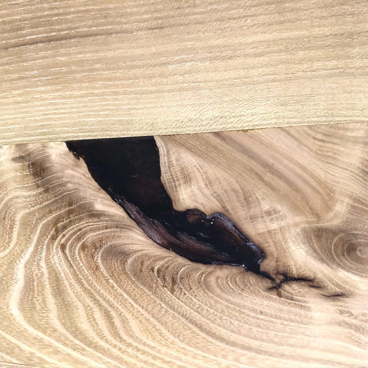 Mittig wurde eine Vertiefung und diverse Astlöcher mit Epoxydharz aufgefüllt.