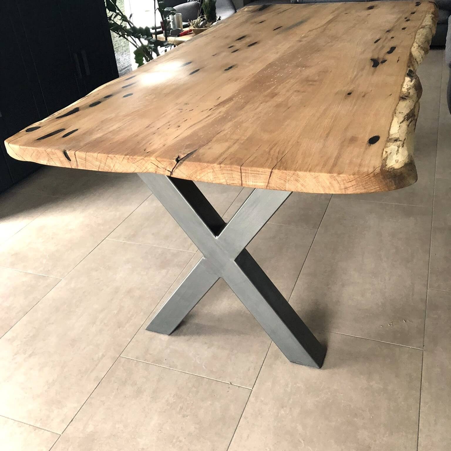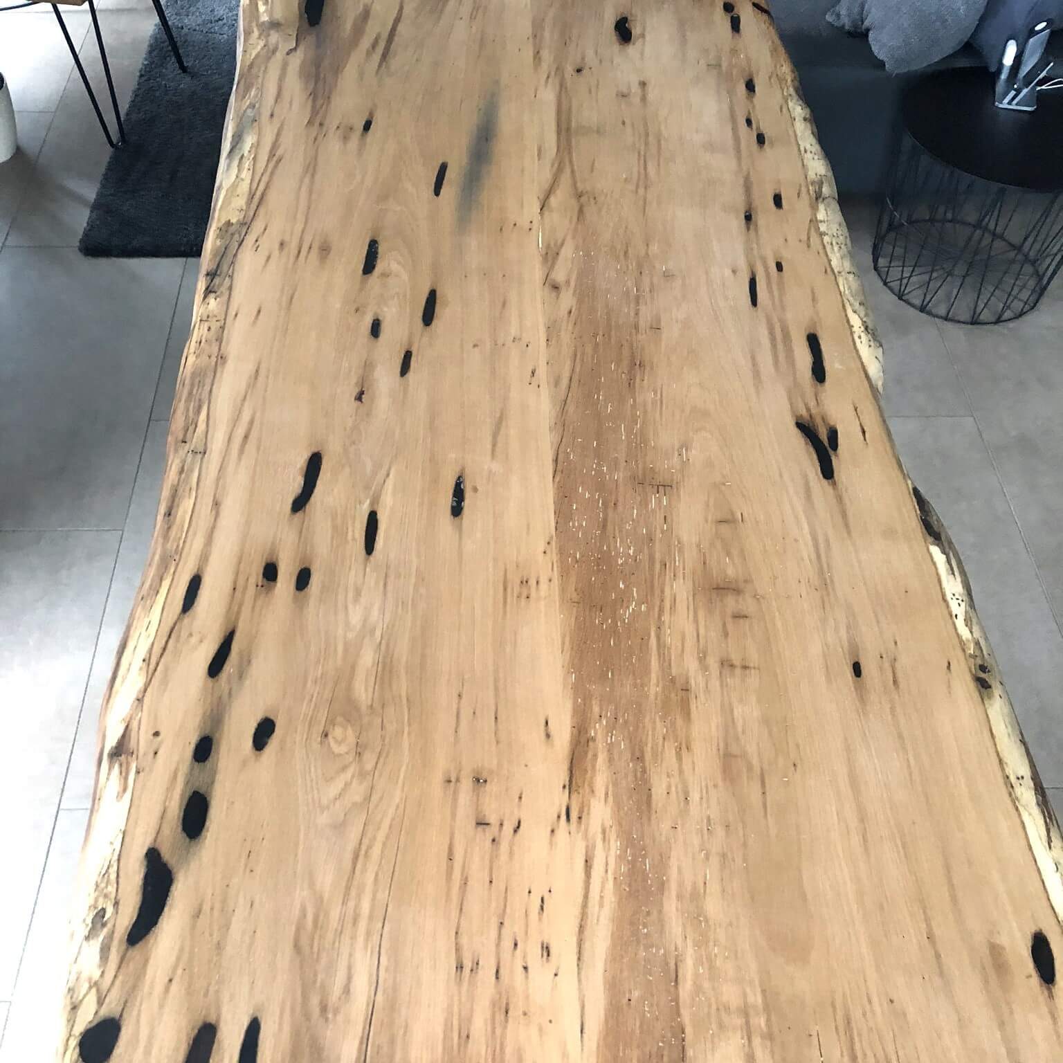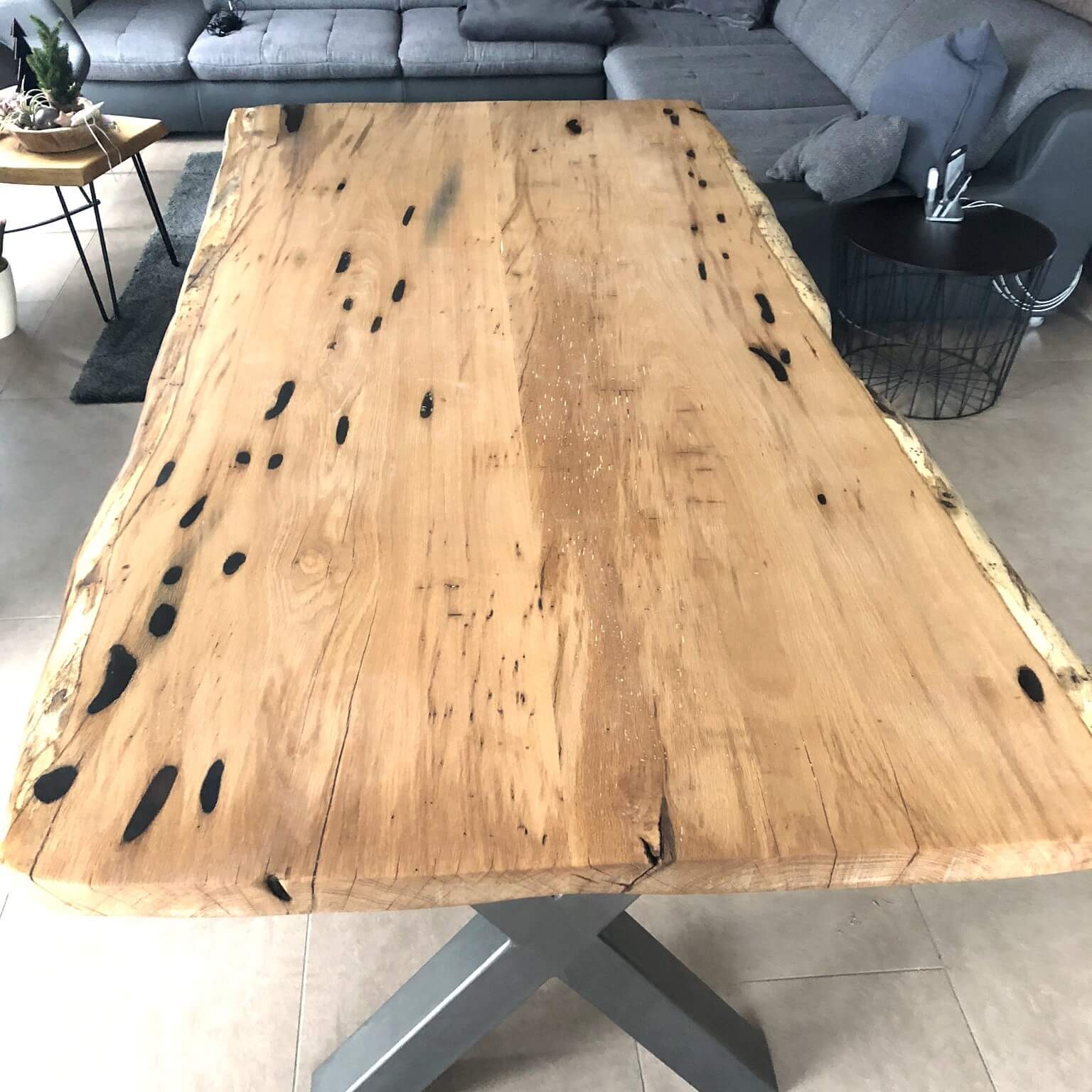 Das Holz für diesen Tisch stammt von einem Eichenstamm