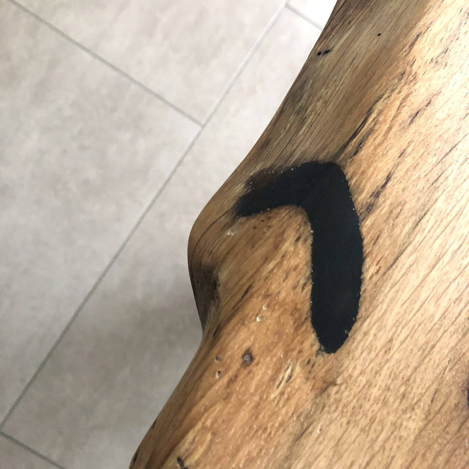 Eine große verwitterte Stelle wurde mit Epoxydharz geschlossen.