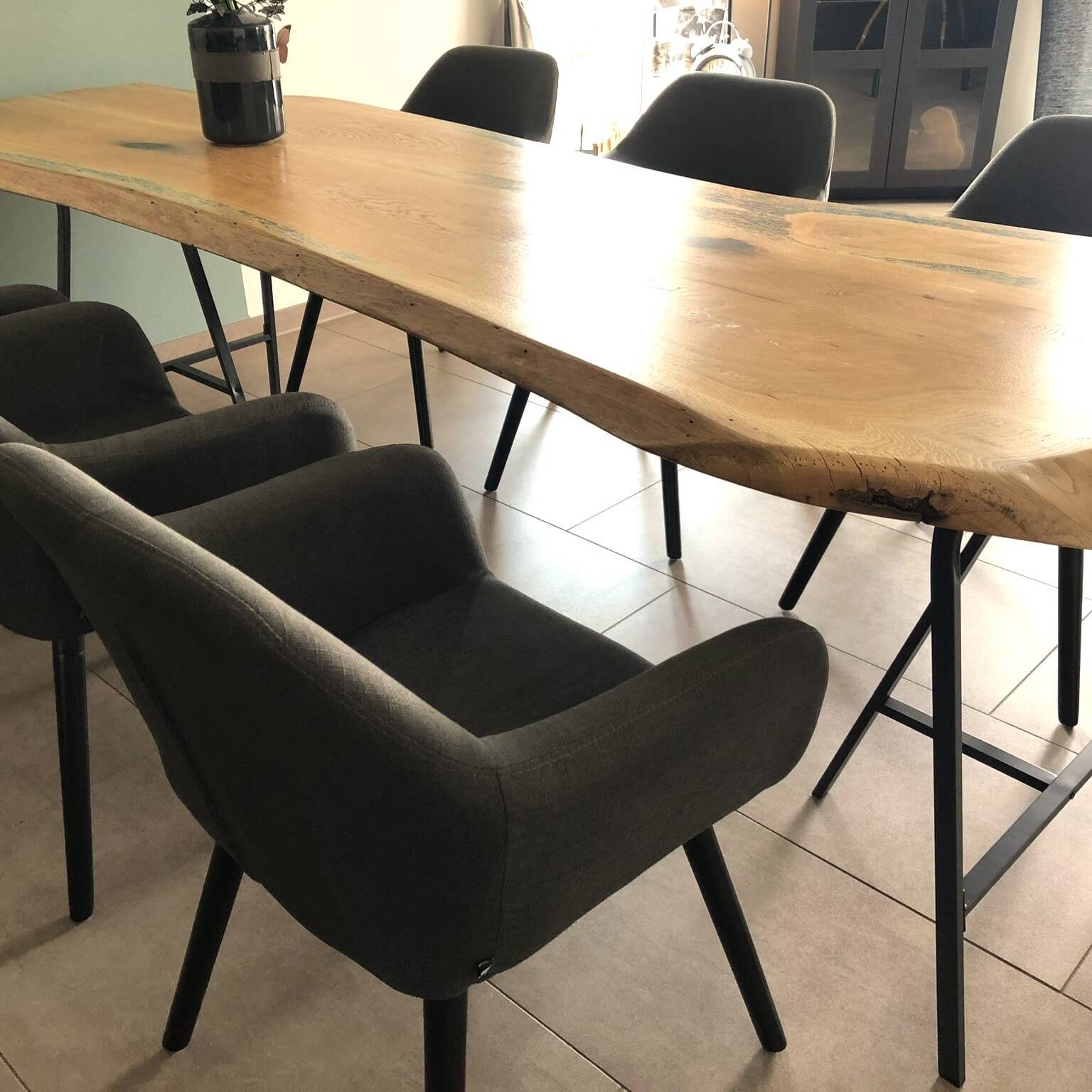 Die Baumkante ist charakteristisch für diesen Tisch und gibt ihm seine einzigartige Form.