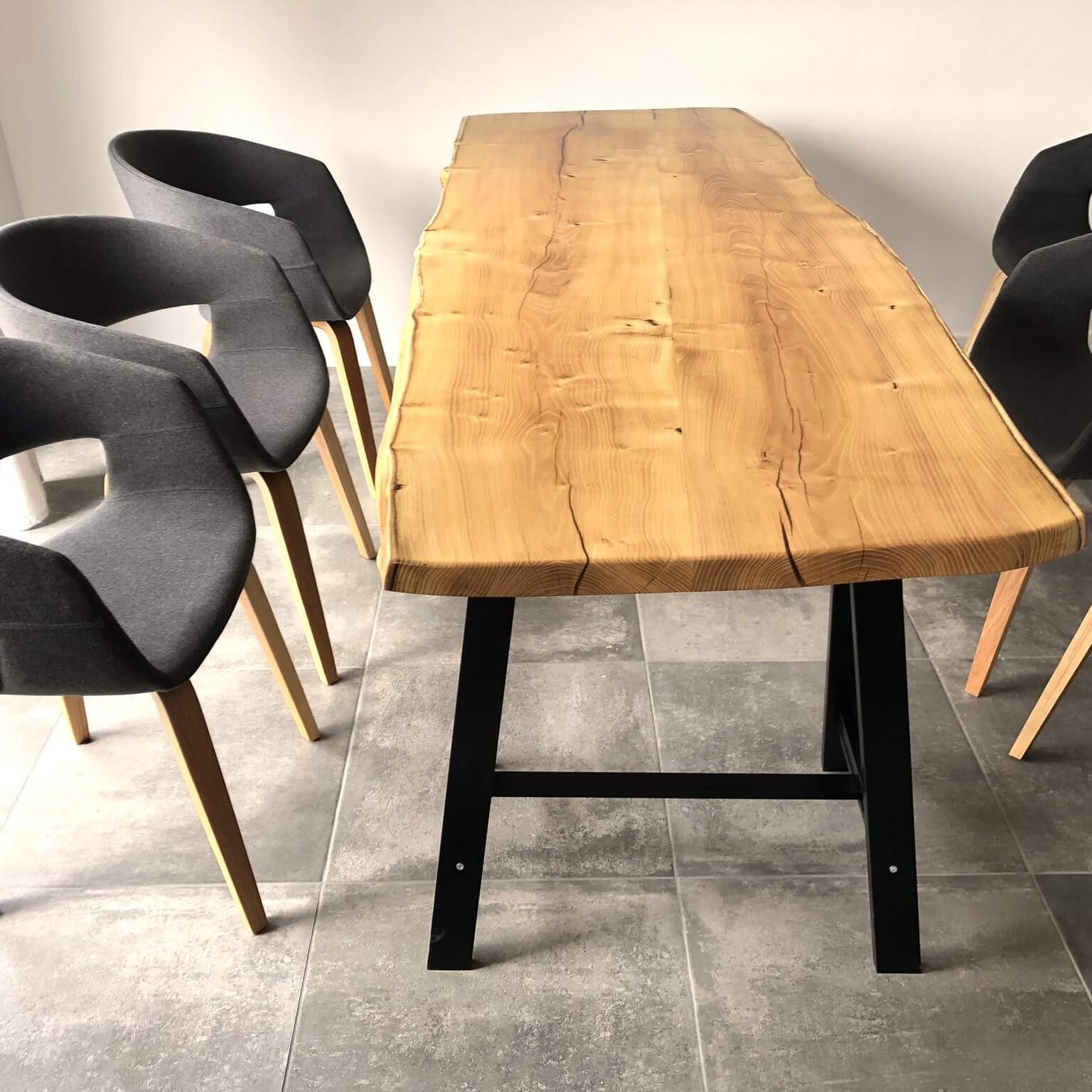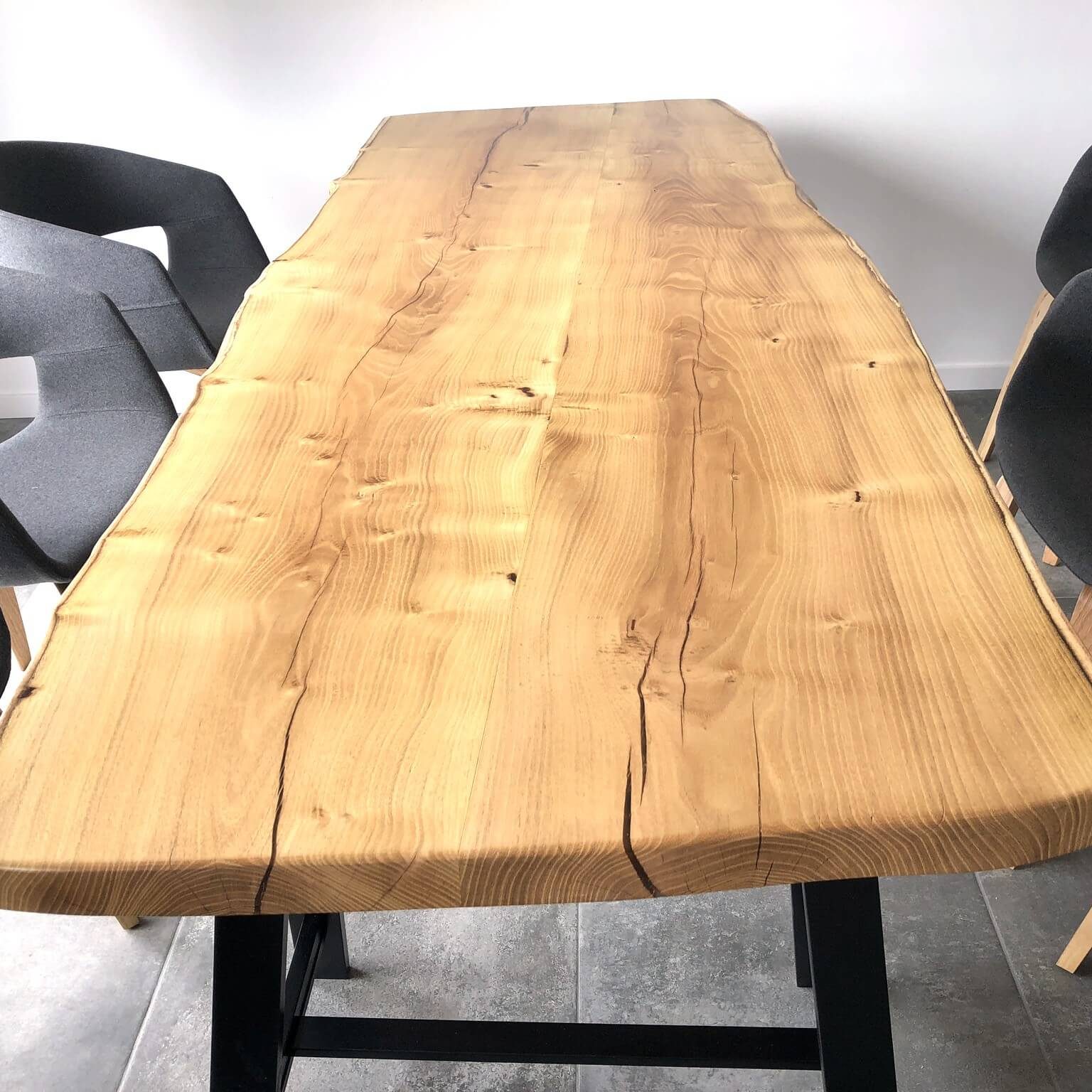 Die getrockneten Akazienbohlen weisen einige Trocknungsrisse auf die mit Epoxydharz geschlossen wurden. Durch das Hartwachsöl kommt die wunderschöne Maserung perfekt zum Vorschein!
