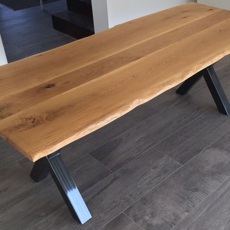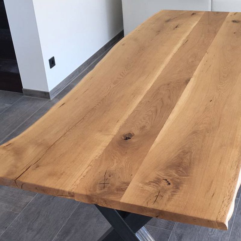 Die Astlöcher und Trocknungsrisse wurden mit transparentem Epoxydharz aufgefüllt umso ein ebene Oberfläche zu erhalten. Durch das Hartwachsöl kommt die wunderschöne Maserung der Eiche erst richtig zum Vorschein!